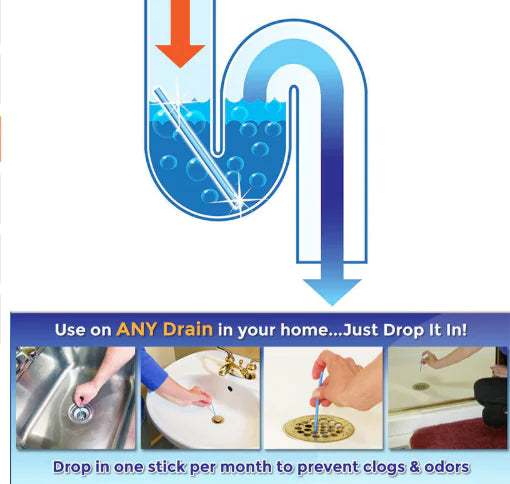 Say goodbye to stubborn stains and unpleasant odors with our innovative sewer cleaning sticks! Designed to be effortlessly placed in your drains, these powerful sticks utilize a special formula to decompose stains and eliminate odors effectively.